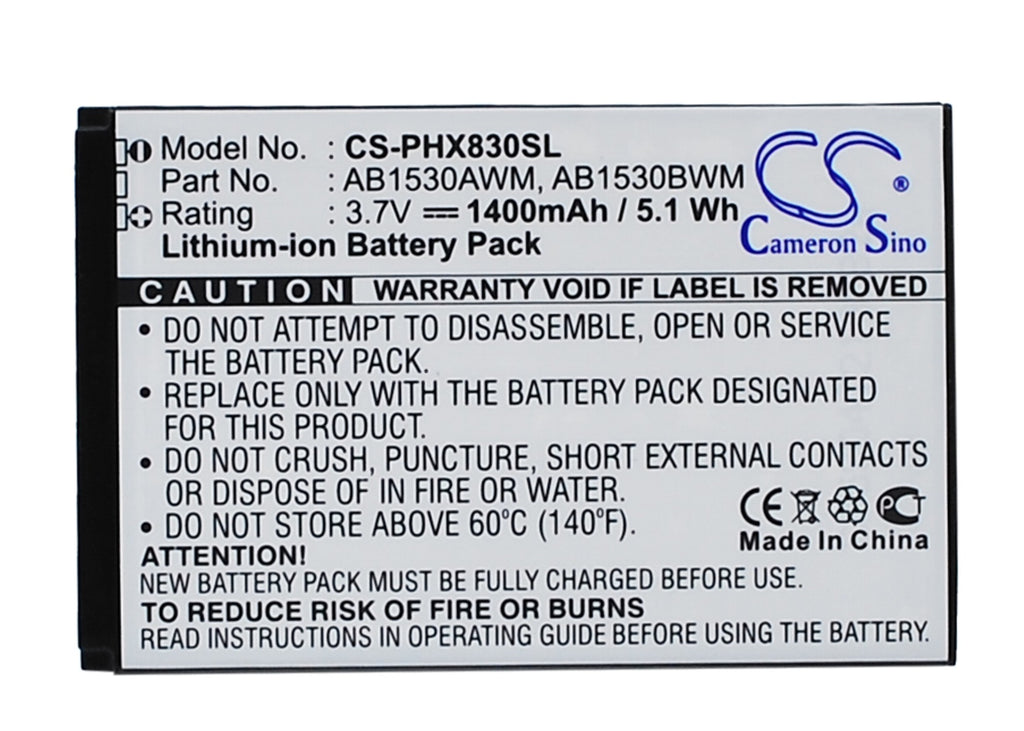 1400mAh 3.7V Li-ion Replacement Battery for Philips Xenium X806, X830, X630, X603, X809, X620, T910