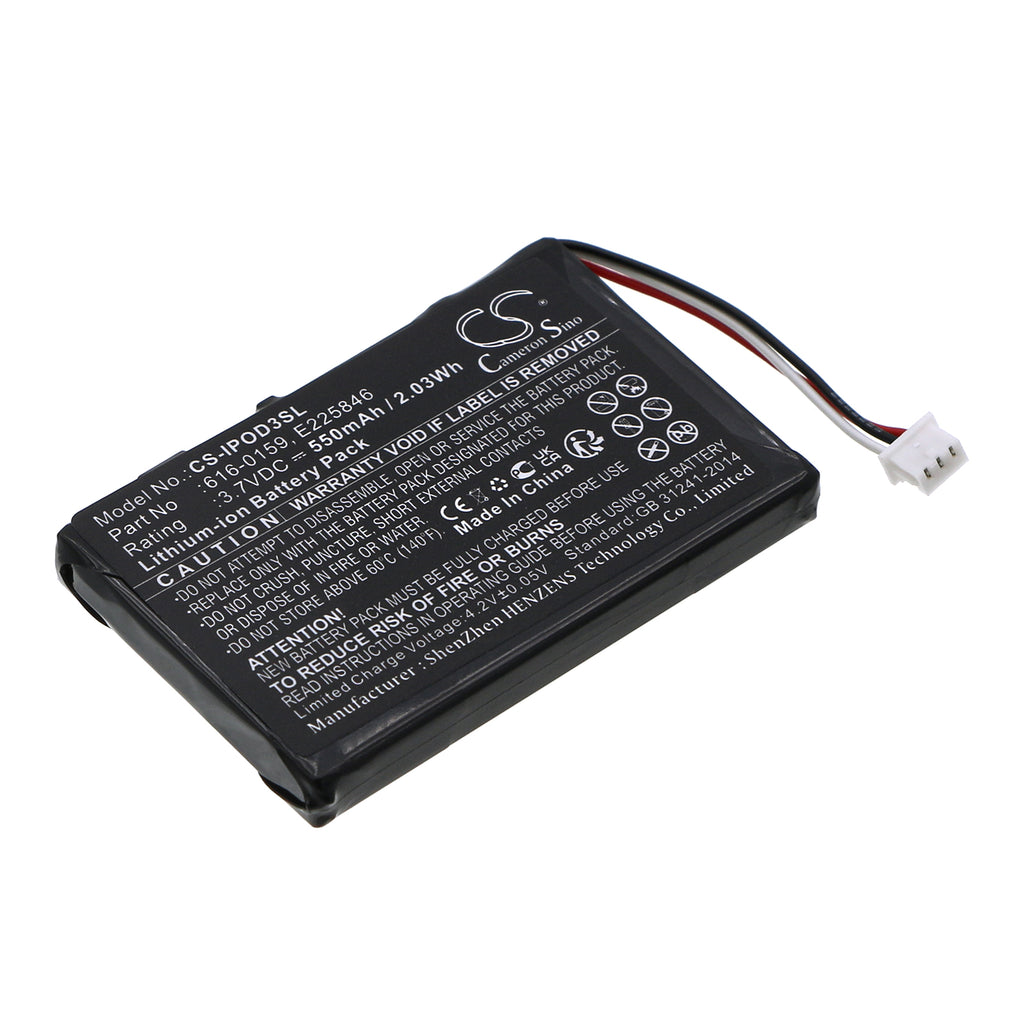 550mAh Replacement Battery for Apple iPod 3rd Gen: 10/15/20/30/40GB, 3.7V Li-ion, MP3 Player Power Boost