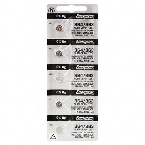 Energizer 364/363TZ Silver Oxide Button Cell Battery 5-Pack 1.55V, 19mAh for Watches & Precision Devices