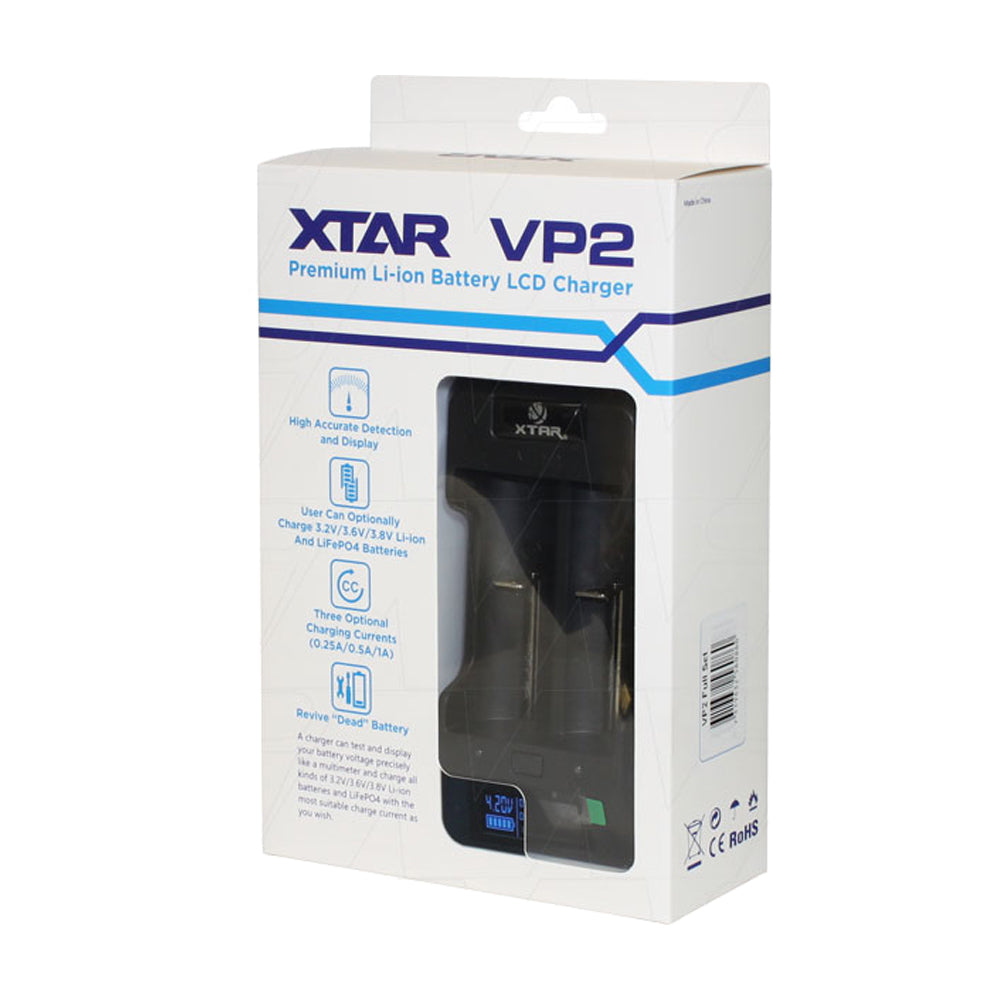 The XTAR VP2 Full Set 100-240VAC-12VDC LCD-Display 1-2 cell LiIon Charger is the perfect solution for anyone who needs to charge their lithium-ion batteries quickly and efficiently. With its range of key features and advanced charging technology, this charger is a must-have for anyone who relies on their batteries for LED torches and other devices. Order yours today and experience the ultimate in battery charging technology.