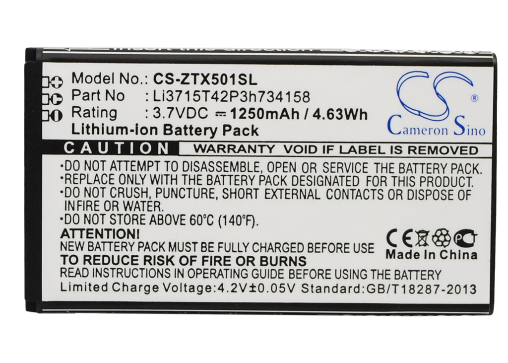1250mAh Replacement Battery for ZTE X500M & Score M Mobile
